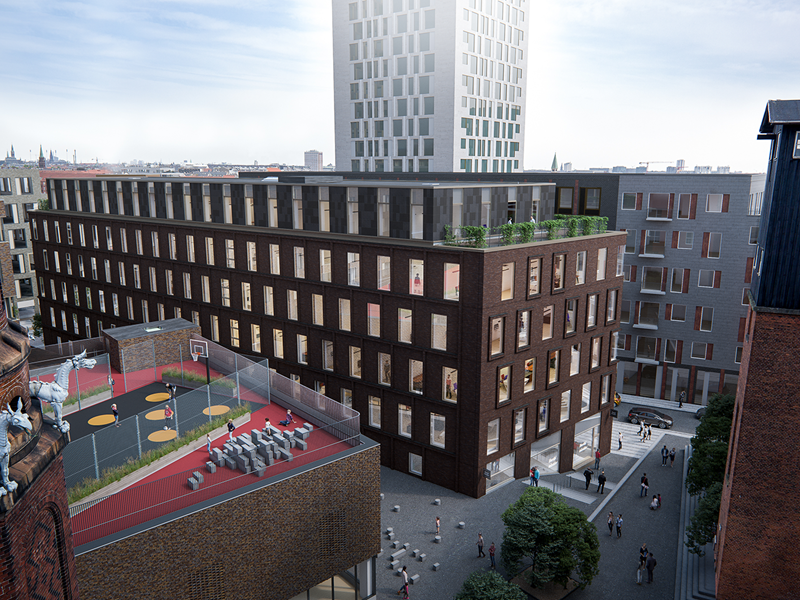 Harild House comprises 6,815 square metres across six floors and forms the final wing of the block for the new European School. The building is part of Carlsberg Byen and is named after the Danish architect Carl Harild, who worked for Carlsberg and was responsible for several of the brewery's buildings. For this project, we produced large glazed units.