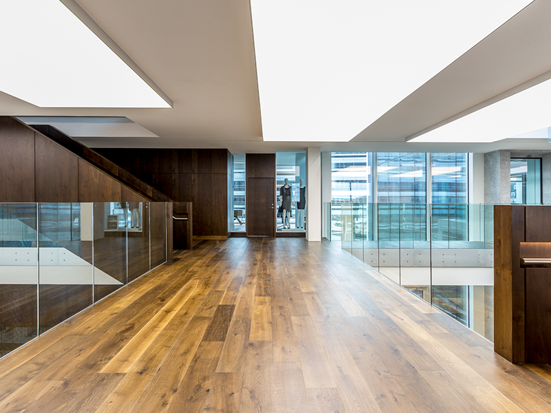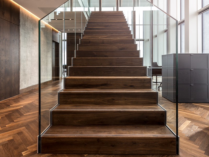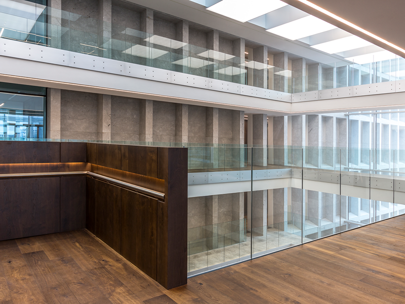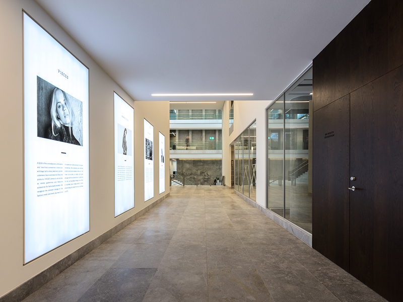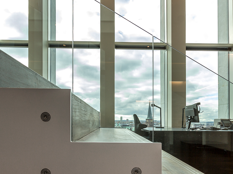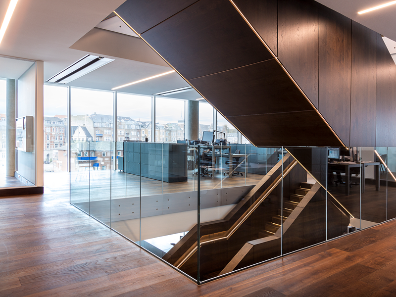 Der er bl.a. valgt en elegant fuget brandglas løsning, hvor æstetikken ikke påvirkes af uønskede rammeløsninger.
