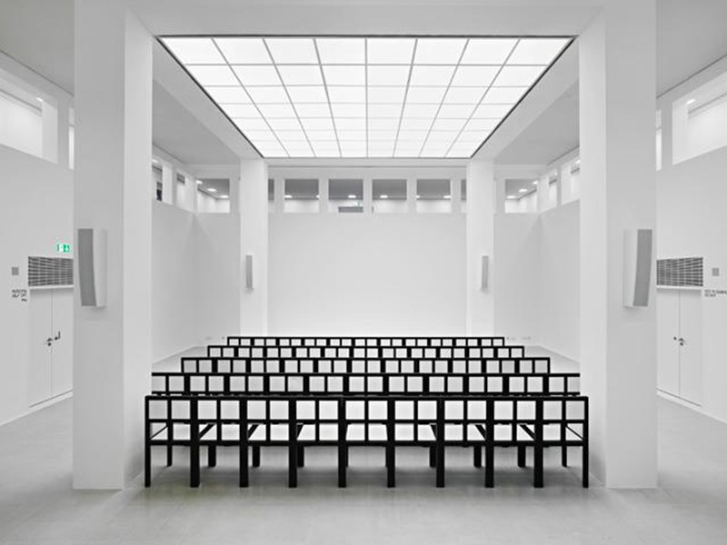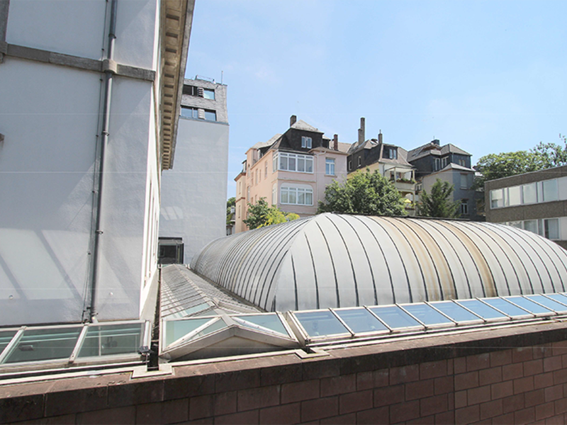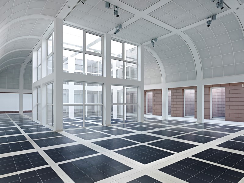 Deutsches Architekturmuseum (DAM) i Frankfurt er blevet renoveret med omfattende brandsikring samt opgradering af bygningens energieffektivitet. De klimatiske forhold for de museumsansatte havde været en udfordring. Især foyeren i stueetagen, var ikke tilfredsstillende, da området blev for varmt om sommeren på grund af glastagene og om vinteren blev rumtemperaturen for kold.