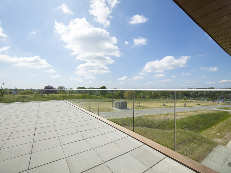 Til projektet har vi produceret og leveret solafskærmende facadeglas samt indvendig brandglas løsning til kiggebalkon.