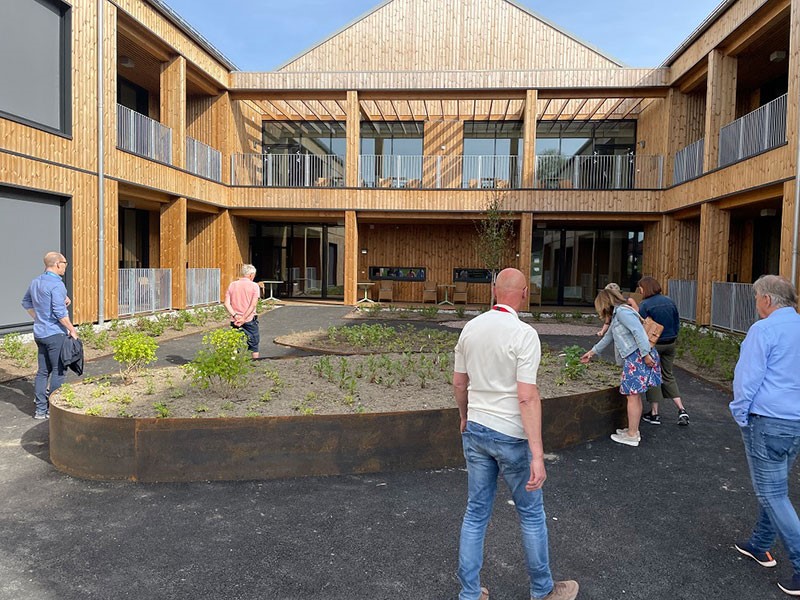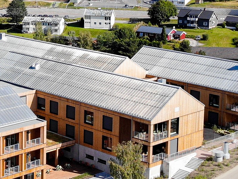 Det nye plejecenter, der ligger i Hov, har et areal på 12.500 m2 og indeholder 90 boliger, heraf 18 ældrelejligheder, 32 lejligheder indrettet til demente beboere, 16 institutionspladser og 24 pladser defineret som behandlingsenheder.
