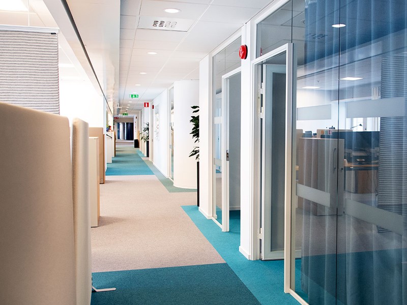 Til projektet har vi bl.a. leveret indvendige brandglas vægge med 2 forskellige brandkrav - Pyrobel® 25 Vision Line EI60 og Pyrobel® 16 Vision Line EI30. Glassene er samlet i transparent fuget løsning hvilket giver et let og elegant udtryk. Det perfekte valg til fuldglaspartier med maksimal lysgennemsigtighed og høj lydisolering.