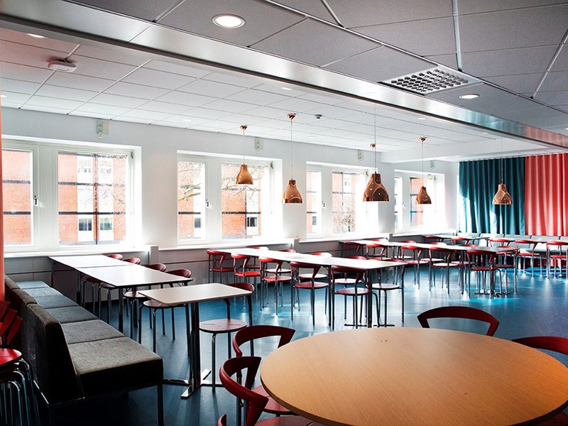 Ved renoveringen af Medicon Village blev der lagt stor vægt på lyd og lys. Nedhængte lofter blev hævet, ventilation tilpasset og vægge fjernet for at skabe en moderne arbejdsplads. På alle etager med arbejdspladser er der lyse vægge og tekstilgulve i smukke blå og grå toner i forskellige farvefelter, hvilket skaber ensartethed mellem etagerne og bidrager positivt til lydmiljøet. Hver etage og del af bygningen har en dagligvarebutik samt mindre mødelokaler og stillerum i tilknytning til arbejdspladserne.